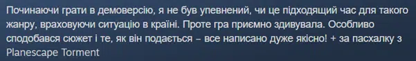 Ukrainian gamers appreciated the demo version, affirming the importance of high-quality localization. It not only makes the game understandable and eliminates language barriers but also helps to establish a deep emotional connection with the player.