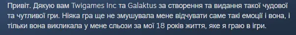 We received this message from the PM of the indie studio Twigames, for which we create the Ukrainian version of Hollow Home. And this is the most valuable praise. If the client is satisfied with the result, it proves that we have done our job well.