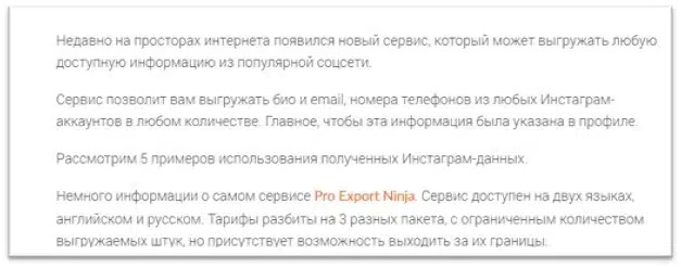 Читатель, который кликнул на заголовок «Собираем контакты из инстаграма и настраиваем рекламу в фейсбуке», сразу увидит пользу от сервиса, и, как бонус, варианты использования собранной информации.