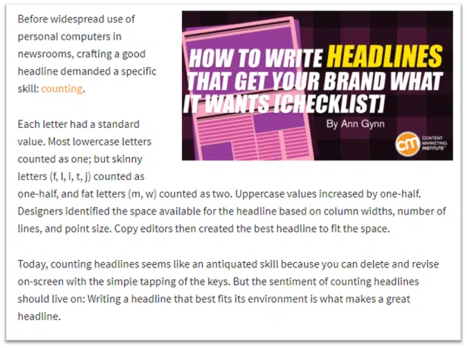 Это представитель лида-рассказа перед чек-листом. Он останавливает читателя и делает подводку к вступительной части, в которой мы узнаем, как создавали заголовки раньше. Формат истории интригует и заставляет дочитать до конца. Также в первом абзаце автор использует прием контраста: «что было» плавно переходит в «что стало».